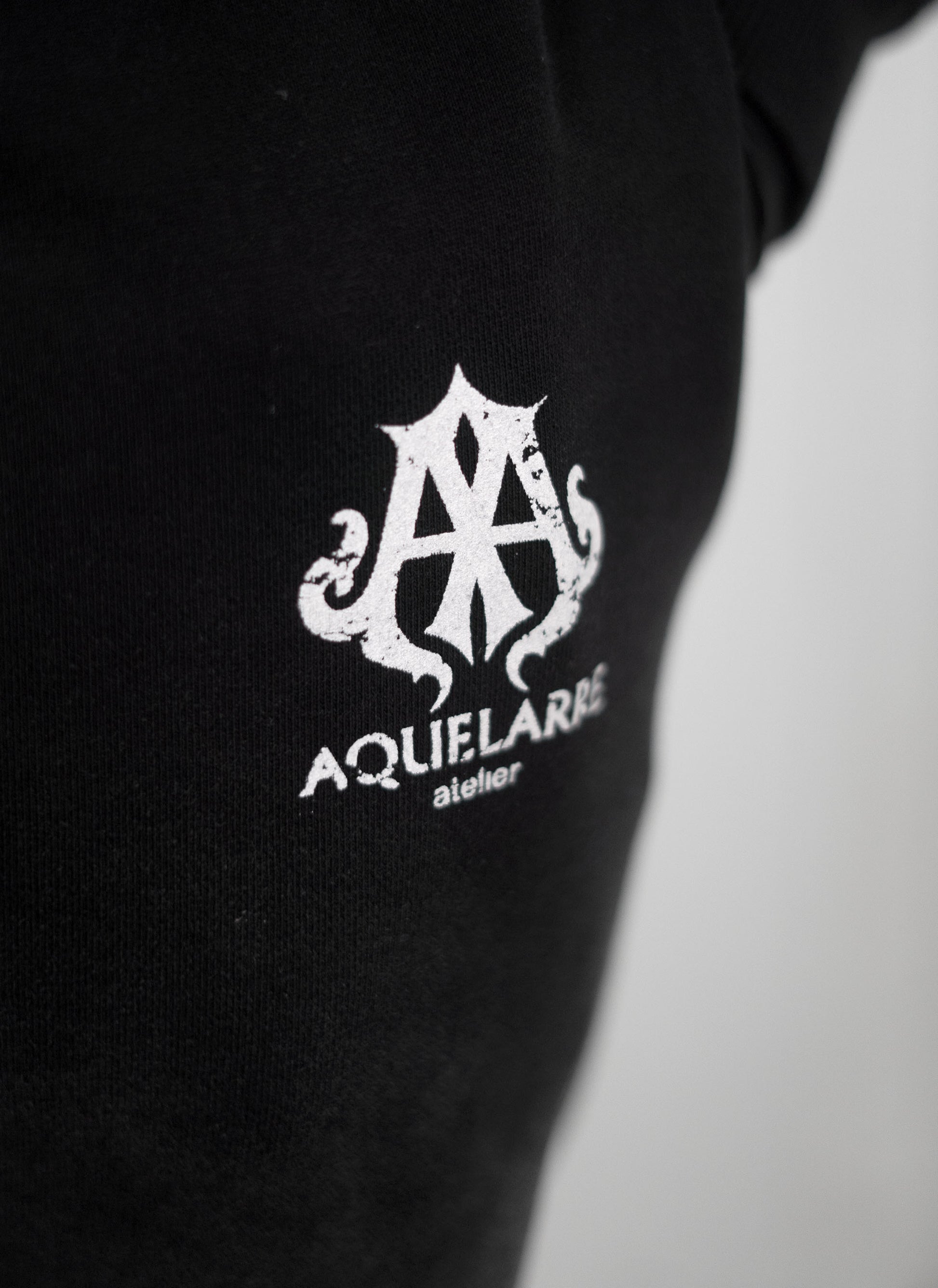 - Logo Aquelarre atelier en serigrafía desgastada con tinta blanca a base de agua