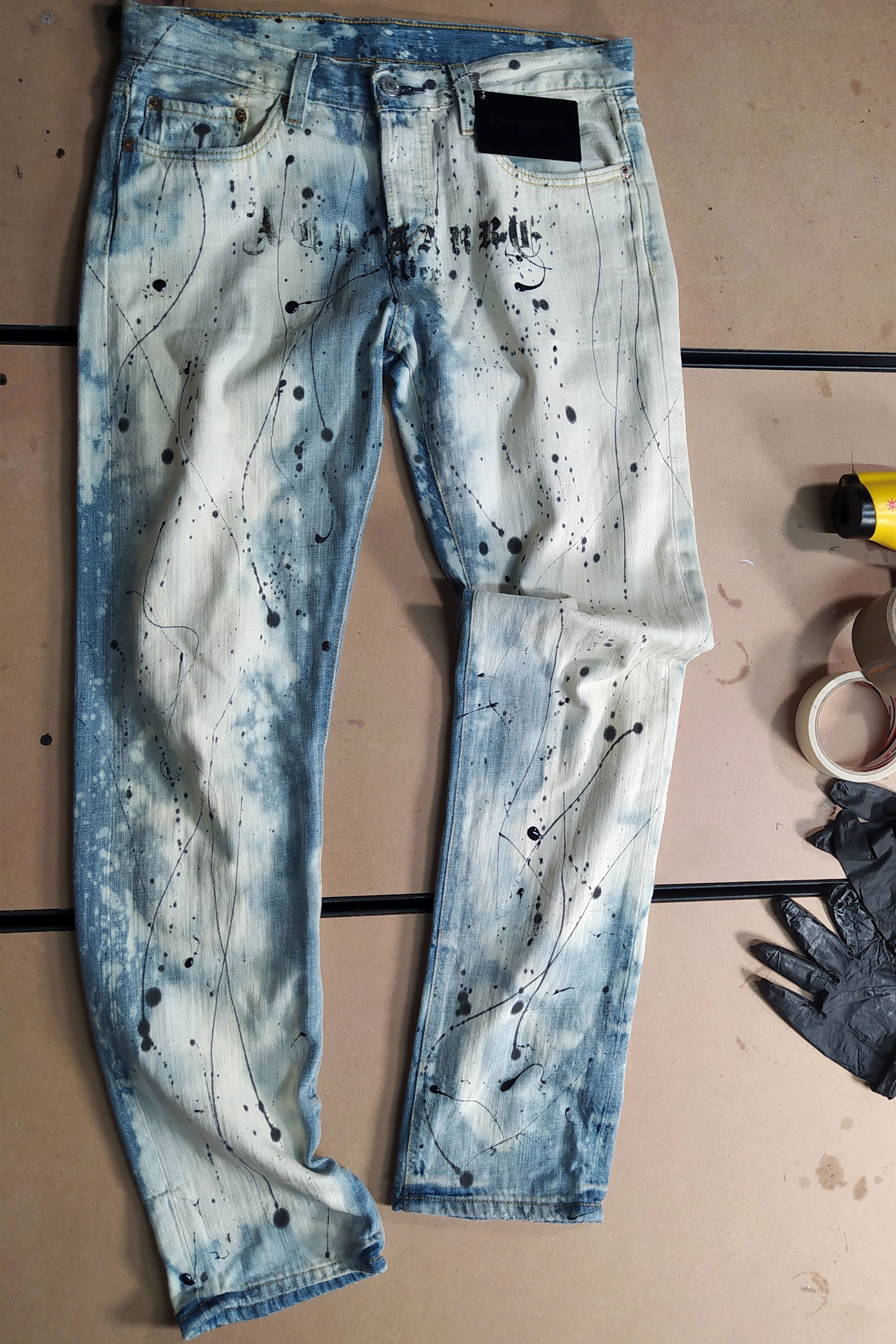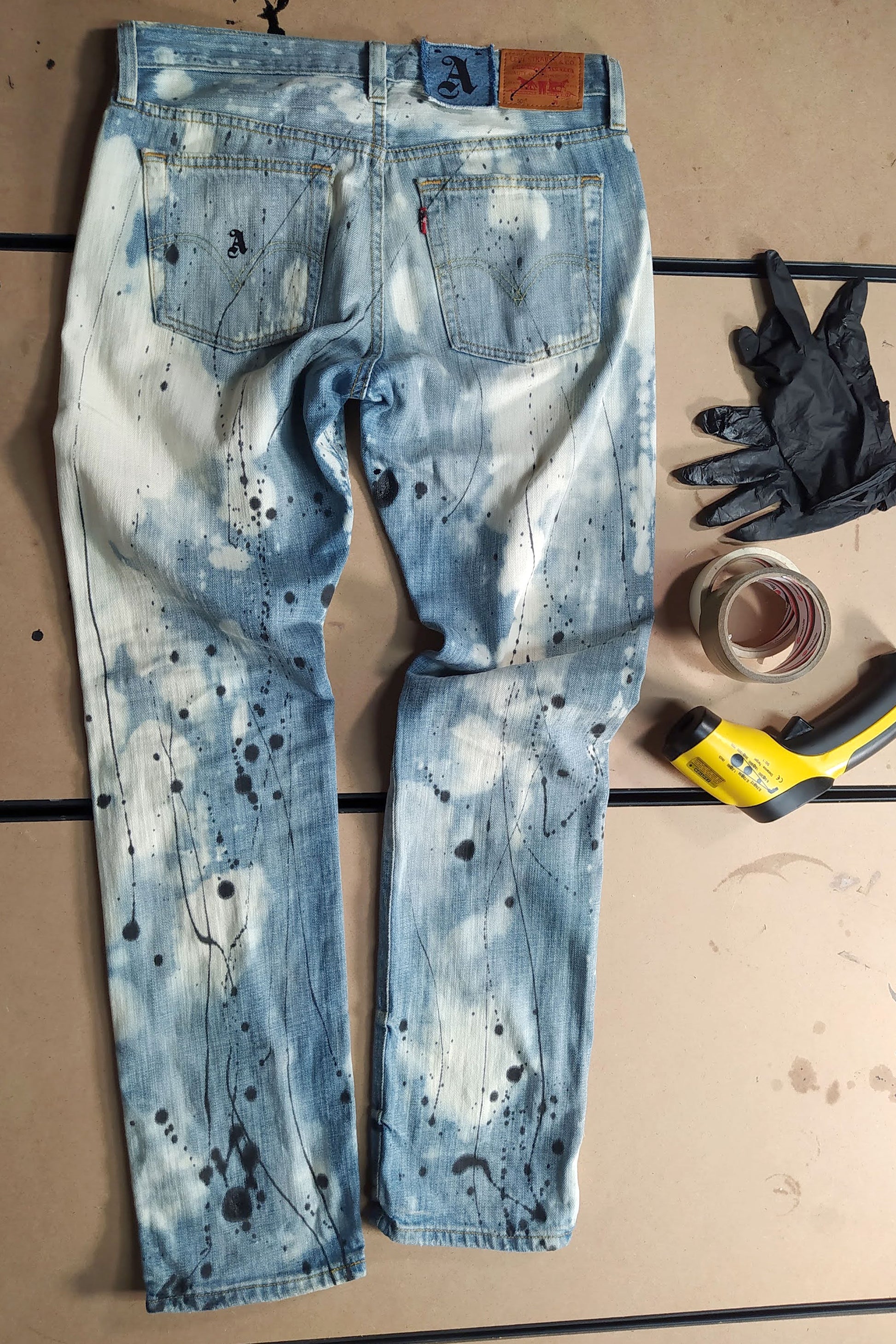 Extra Materials: Bleached vintage Levis + screenprinting + polyurethane resin + textile vinyl